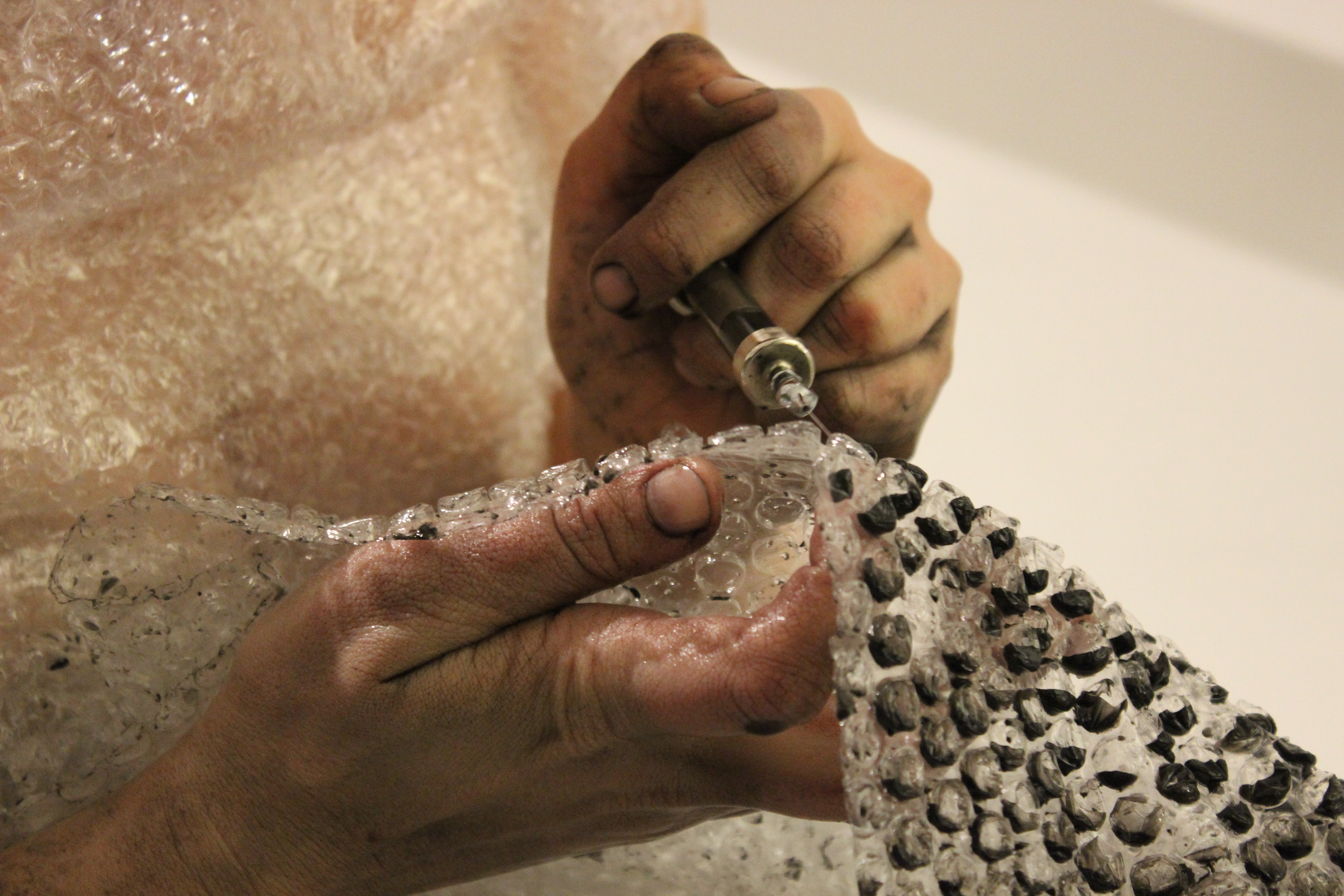 Dieses färbt sich über die Stunden immer dunkler. Sie verfolgt für sich ihre Tätigkeit, ohne auf andere Menschen oder körperliche Beschwerden zu reagieren. So sitzt sie als lebendes Bild über Stunden an einem öffentlichen Ort, der von den Besuchern begangen werden muss.